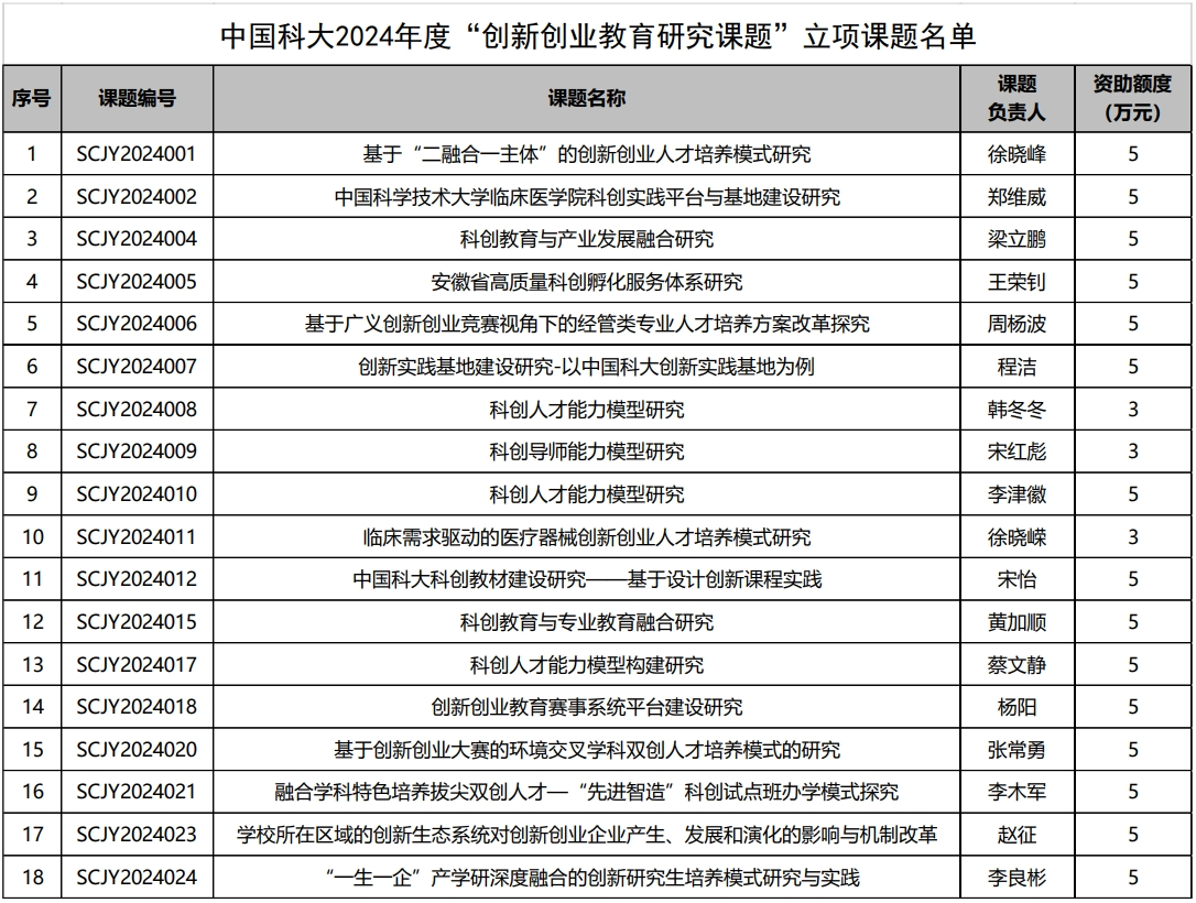 胜游体育(SYsports)官方网站入口2024年度“创新创业教育研究课题”申报评审工作已顺利结束,经过课题申报、资格审查、专家评审、立项公示、预立项等环节,最终确定“基于‘二融合一主体’的创新创业人才培养模式研究”等18个课题为我校2024年度“创新创业教育研究课题”,予以资助。