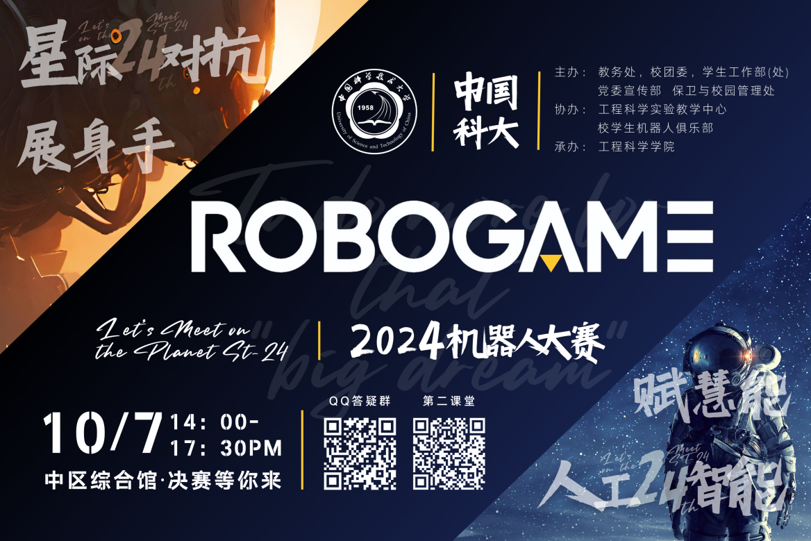 2024 RoboGame机器人大赛(第24届)决赛将于10月7日下午14:00在中区体育馆举行。校内观众届时可前往观赛。